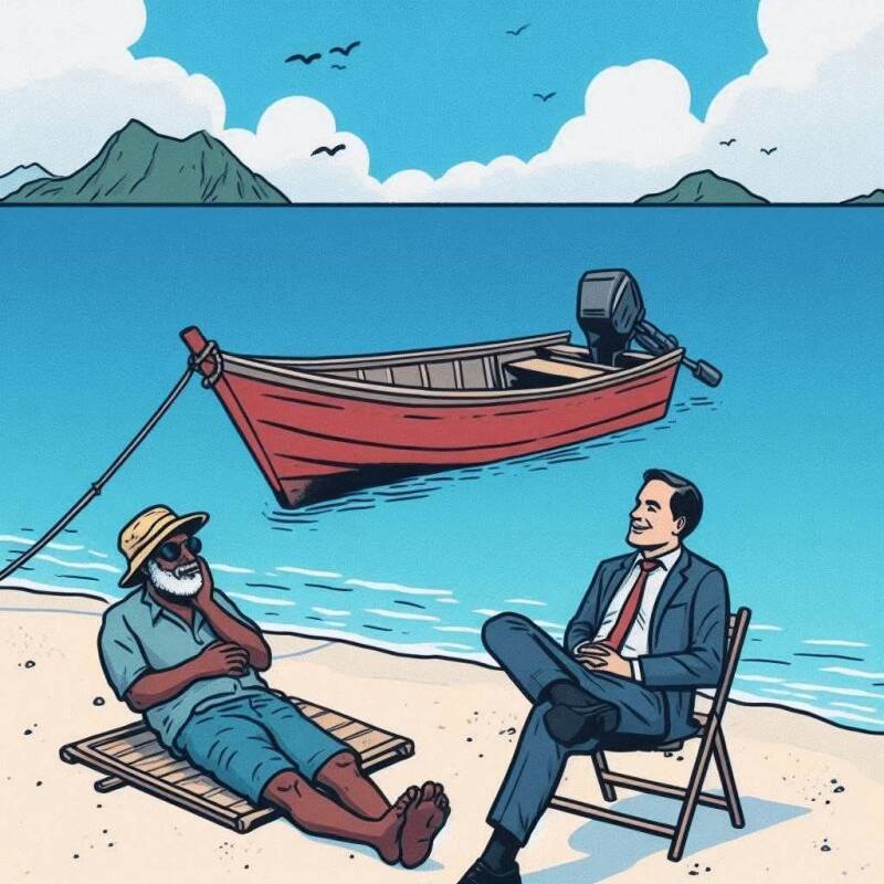 Diese Geschichte erinnert in ihrer Tiefe an Heinrich Bölls "Anekdote zur Senkung der Arbeitsmoral".