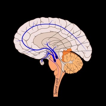 Das Belohnungssystem im Gehirn: Die blauen Linien zeigen die dopaminergen Nervenbahnen, die stark an Motivation, Lernen und Glücksgefühlen beteiligt sind. Dopamin wirkt als Belohnungssignal tief im Gehirn. Es motiviert uns und vermittelt Freude, wenn wir etwas Gutes erleben: leckeres Essen, Sport, Sex oder ein Kompliment. Wir fühlen uns zufrieden und lernen, dass diese Handlung positiv war. Dopamin sorgt also dafür, dass wir wertvolle oder schöne Verhaltensweisen wiederholen möchten. Ohne Dopamin keine Motivation, kein Lustgefühl. Doch gerade dieses System, das uns eigentlich schützen und belohnen soll, wird bei einer Sucht zum Fallstrick.