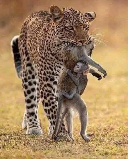 Ein Leopard hat sich die Beute geschnappt in seinem Kiefer hängt der leblose Körper eines Pavians. Der Jäger will seine Beute zu seinen Jungen bringen. Doch ein kleiner, bewegender Moment sticht heraus: Am Körper seiner toten Mutter klammert sich ein Pavianbaby fest. Mit Angst in den Augen weigert es sich, sie loszulassen.